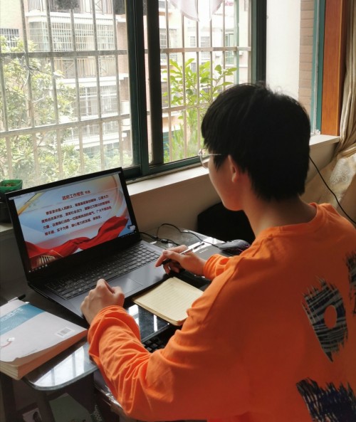 19级计算机类01班罗启涵表示:“开幕会上,委员肃立,为在新冠肺炎疫情中的牺牲烈士和逝世同胞默哀一分钟,彰显了全国人民对他们的哀悼之情,更是敬畏生命的体现。在集体默哀中守望相助,在爬坡过坎中奋勇前行,从中汲取无穷的力量,我们就一定能够在磨难中成长、从磨难中奋起!我们定能拨开云雾,携手共创小康,中国加油。”