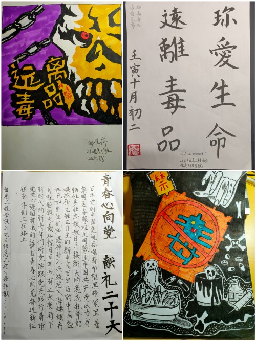 信息工程学院学校有关通知要求,广泛动员、规范开展,实现毒品预防教育全面覆盖。活动期间,组织在校学生通过全国青年少年毒品预防教育数字化平台进行一次线上参观学习、各班级召开一次禁毒主题班会、开展一次禁毒知识答题、观看一次禁毒题材影视作品,在学院微信公众号推出了禁毒主题推文,并线上开展了一次禁毒作品征集活动,以禁毒主题书画文字作品传播禁毒知识、弘扬禁毒精神。