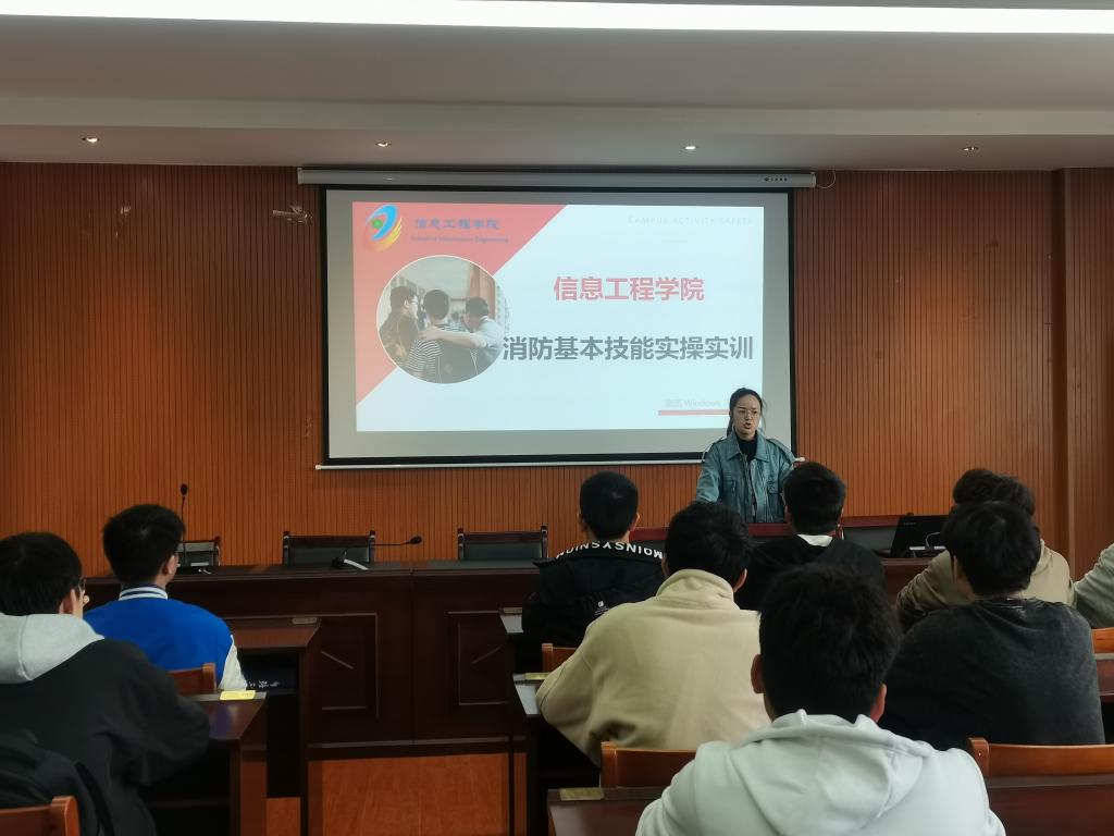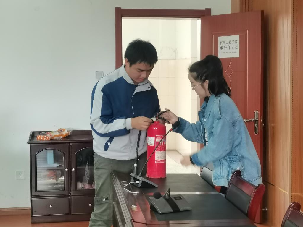 为增强学生的安全防火意识,进一步掌握火灾等突发事件的处理流程,增强在处理突发事件过程中的协调配合能力。11月23日,信息工程学院在信工楼A208开展消防基本技能实操实训,各班级的安全员参加。