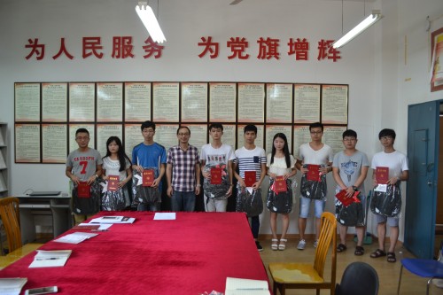 6月24日,信息工程学院学生党支部在北A103开展“七一”表彰颁奖仪式暨学生党员重温入党誓词活动。信息工程学院党委副书记章蔚中,团委书记彭云,辅导员及全体学生党员参加了此次活动。活动中,章蔚中副书记为获得“七一”表彰的同学颁奖,并鼓励现场各位获得奖项的党员同志再接再厉,用党员的标准进一步要求自己。随后,全体学生党员面向党旗,庄严宣誓,表示在今后的学习工作中要发奋努力,充分发扬党员的模范带头作用。