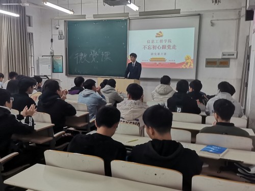 为贯彻落实学习习近平新时代中国特色社会主义思想,进一步增强党课的吸引力和感染力,提升党内活动。信息工程学院学生党支部于11月24日开展“不忘初心,跟党走”微党课大赛。