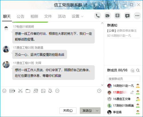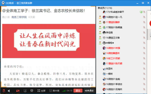 为落实疫情防控期间的党内组织生活,确保全体党员组织生活“线上过”,党员队伍“不掉线”。信息工程学院学生党支部于2020年3月15日在学生党员qq群召开网络组织生活学习会。