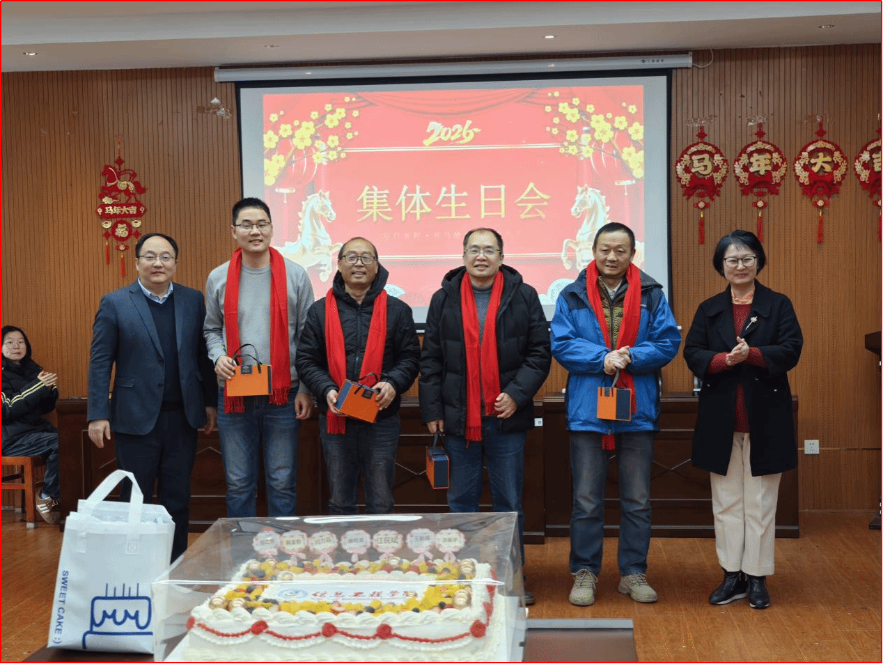 为进一步增强学院教职工的凝聚力与归属感,茶话会还特别设置了温馨的集体生日会环节,为2026年整数岁的老师庆祝生日。伴随着全场齐声唱响的《生日快乐》歌,寿星们共同许下美好心愿、分享蛋糕。学院党政负责人向各位寿星致以诚挚的生日祝福,并送上精心准备的生日礼品,与大家合影留念,共同记录这充满温情的美好时刻。