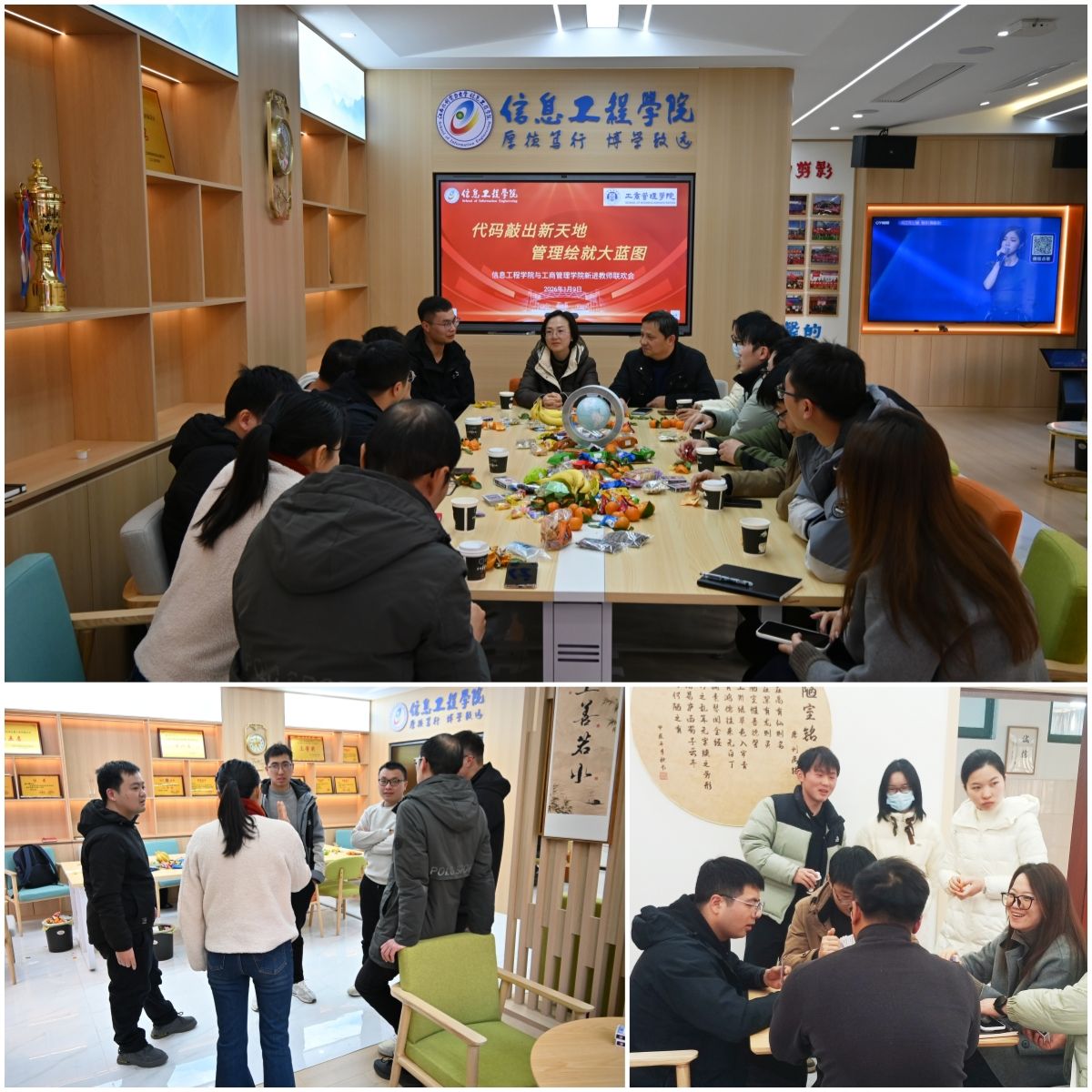 为促进学校新进教师跨学科交流互动,增强团队凝聚力,帮助新教师快速融入校园氛围,1月9日下午,信息工程学院与工商管理学院工会在信工楼A202教工之家联合举办了“代码敲出新天地,管理绘就大蓝图”新进教师联谊会,两院工会主席和新进教师近20人参加。
