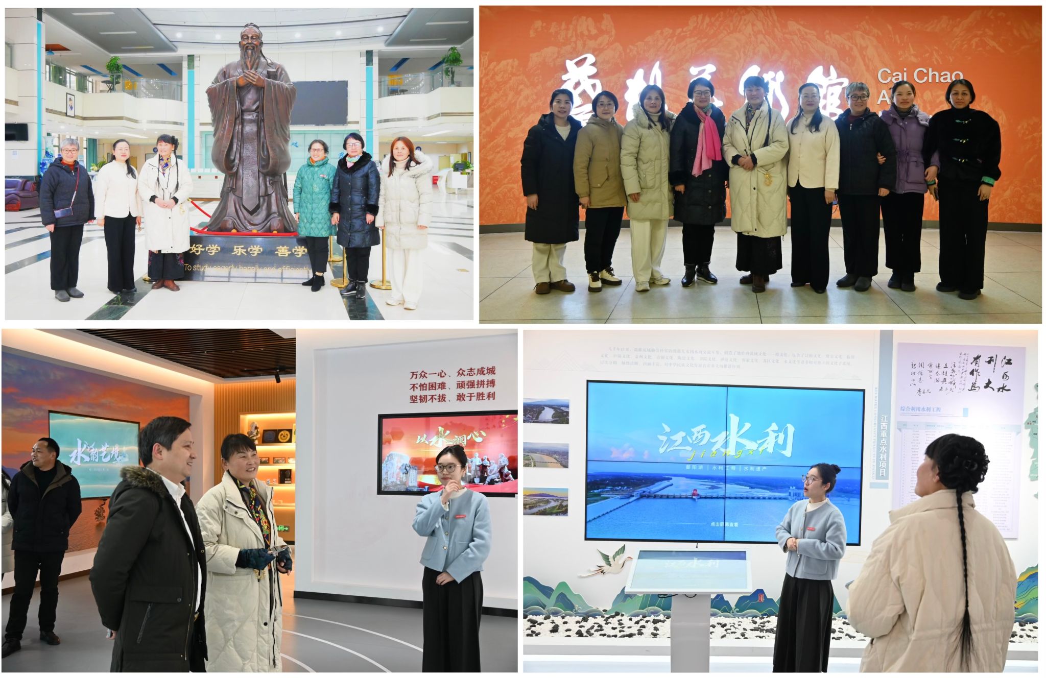 会后,支月英老师先后在图书馆负责人和水文化馆讲解老师陪同下参观了学校图书馆、蔡超美术馆和水文化馆,对学校的办学成就、文化底蕴、水利电力特色及师生风采给予了高度评价,对学校深耕育人、传承水利文化的举措表示充分肯定,并向学校和全体师生送上了美好的新春祝福,祝愿江西水利电力大学事业长青、声名远扬,全体师生新春快乐、阖家幸福!(文/图 罗甜)