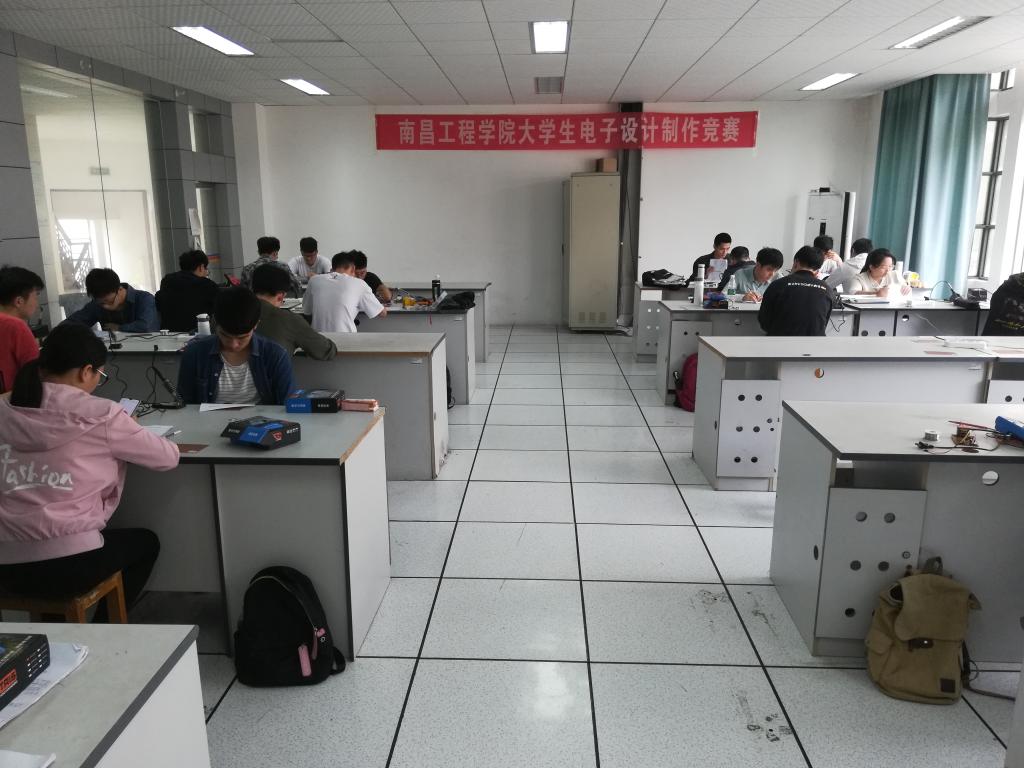 由我校大学生创新创业竞赛领导小组办公室主办,信息工程学院承办的南昌工程学院第十四届现场电子设计制作大赛于4月20日在电子信息楼B307,B308,B303,B304四个教室同时举行。全校两百多名同学参加了本次大赛。信息工程学院党委副书记章蔚中莅临比赛现场指导工作。