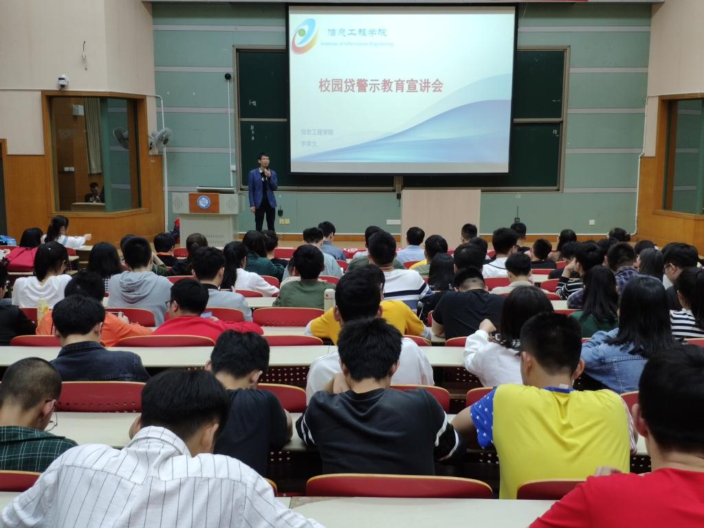 为了深入开展校园不良网贷风险警示教育,让学生充分认识到校园贷的危害,防止校园贷侵害学生,信息工程学院于2019年4月19日晚在北C104举办校园贷警示教育宣讲会,此次宣讲会由李家文老师主持,参与本次宣讲会的有全院各班级班长团支书以及团委学生会学生干部。