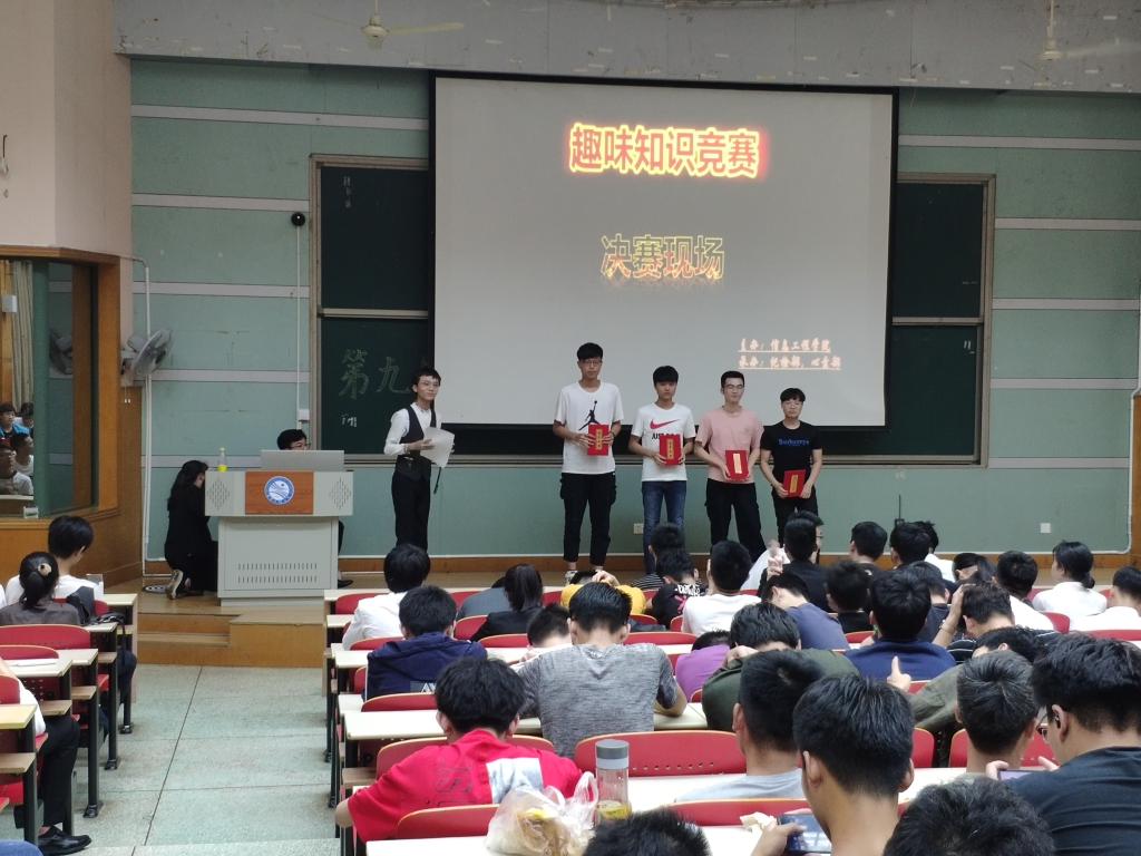 为了调动学生积极性,丰富课余文化生活,4月25日,信息工程学院第九届趣味知识竞赛在北c104教室圆满落幕。来自本学院200余名学生参与并观看了比赛。