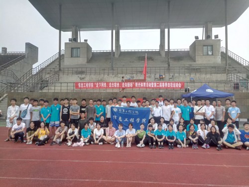 为强健学生体魄,展现当代大学生风采,谱写青春华章,5月18日,信息工程学院在校田径场举办了以“走下网络,走出宿舍,走向操场”为主题的阳光体育活动暨第二届春季运动会。本次运动会共有三百余人参赛。