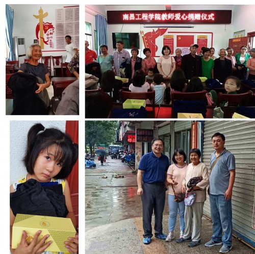 受校工会和信息工程学院党政的委托,7月10日,学院工会主席涂振宇、通信工程教研室教师邹宝娟、计算机软件与理论教研室教师侯家振一行,冒雨驱车来到抚州市老城区看望慰问邹宝娟老师的母亲,按照老人家的嘱托,将她亲手制作的200多件童裤、三十余套呢子大衣与西装共计300余件全新衣物运送至学校定点帮扶贫困村——抚州市东乡区王桥镇菱塘村,捐赠给村里的老人和孩子。校党委副书记吴泽俊、校工会主席胡盛华、党校常务副校长(校党委组织部副部长)汪小布出席了捐赠仪式。