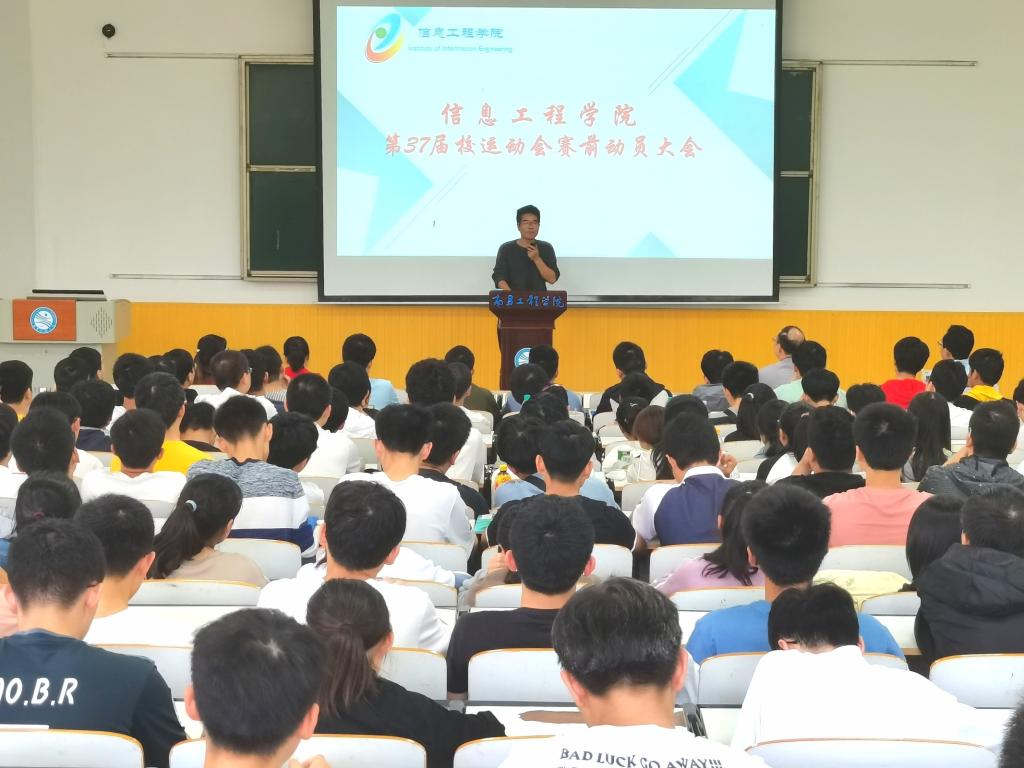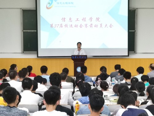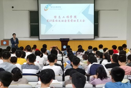 为增强体育建设,提高同学们的积极性,信息工程学院于9月30日在南C105教室召开第37届校运动会动员会。信息工程学院院长黄志开、党委副书记章蔚中、辅导员老师和参赛运动员共计200余人参加本次动员会。