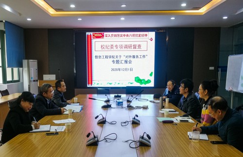 为深入贯彻党的十九届五中全会、进一步落实中央八项规定精神,规范学校的资产经营创收经费管理、盘活校内资源、抓好学校的开源节流等工作,12月1日上午,校纪委书记殷安全一行3人到信息工程学院开展专项调研督查活动。信息工程学院副科以上干部参加。