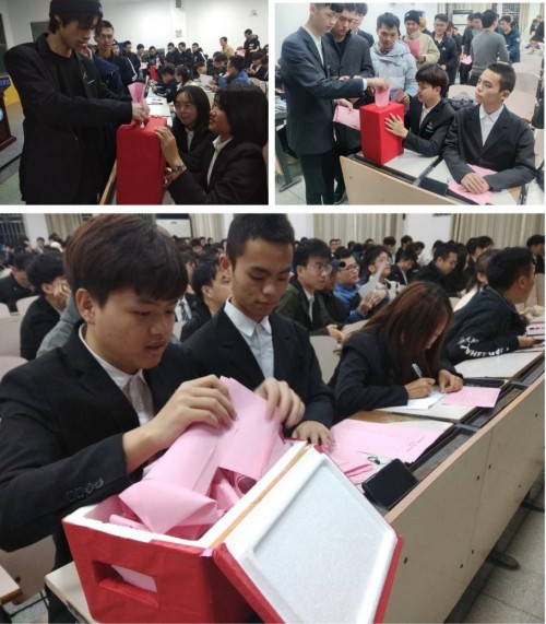 信息工程学院于12月3日在南C105召开第十六次学生代表大会。学院辅导员张荣、学院第十五届学生委员会部分委员以及院各班级学生代表共计190余人参加了此次大会。