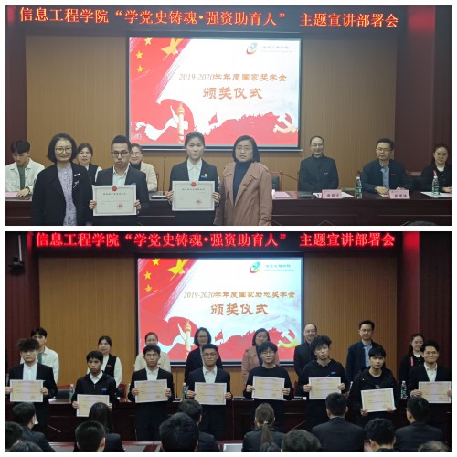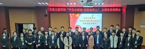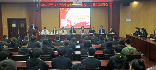 为深化党史学习教育,突出“我为群众办实事”实效。4月15日晚,信息工程学院在大学生活动中心B100举办”学党史铸魂•强资助育人”主题宣讲部署会。学校大学生资助管理中心和学院党委负责人、全体辅导员、校学生社团自强社负责人、获得奖励资助学生和学生干部、学生代表等共计一百余人出席。