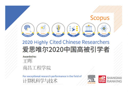 据2021年4月22日爱思唯尔(Elsevier)正式发布的2020年中国高被引学者(Highly Cited Chinese Researchers)榜单,我校信息工程学院教授王晖博士在计算机科学与技术学科领域进入中国高被引学者榜单,这是我校教师首次入选该榜单。