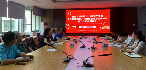 6月18日,信息工程学院在电子信息楼B204会议室召开党政联席会扩大会议,对近期学院师生思想动态和安全稳定形势进行分析研判,安排部署“七一”前后和暑假期间工作任务。学院综治工作领导小组成员参加。