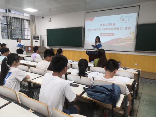 为了强化学风建设效果,加强学生诚信教育,信息工程学院于6月23日在南c101开展“诚以立身、信以立德”诚信教育活动。学院辅导员老师、各班级主要学生干部、团委学生会组织共计150余人参与了此次活动。