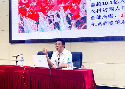 9月18日下午,校党委委员、副校长,校党史学习教育“十百千”宣讲团成员陆伟锋在北教学楼C105教室为分管联系单位作了一场题为《学习贯彻习近平总书记“七一”重要讲话精神,激发奋进新时代力量》的专题宣讲。后勤处、信息工程学院、继续教育学院、士官学院(含人民武装部)的领导干部和部分党员干部师生代表共170余人参加。