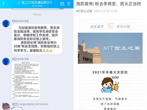 学院根据实际情况结合学校的消防安全宣传教育工作安排,制定了一份周全有效的活动方案。首先,为营造安全生活环境,学院在学生宿舍楼栋开展了消防安全大排查,重点排查改造防盗窗、违规拉电线、使用违规充电器等安全隐患,并做好登记。同时,各年级班级积极召开主题班会与宣讲会,使同学们清楚明白了消防器具的使用方式,再次使同学们认识到消防安全重要性与必要性。学院为巩固消防安全教育成果,于线上通过QQ群宣传安全常识知识、微信公众号推送消防安全文章,在线下通过楼栋电子屏和横幅显示消防安全警示标语,并组织学生干部下寝发放消防知识宣传单,进一步提高了同学们的消防安全意识。