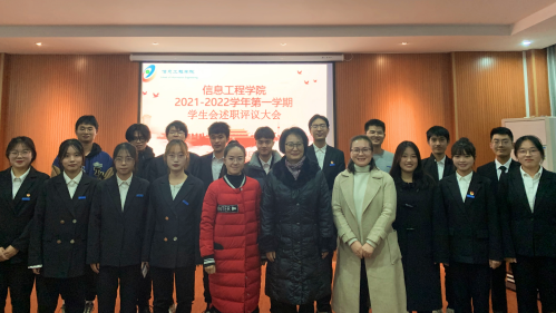 12月23日,信息工程学院在电子信息楼A208会议室召开学生会负责人述职评议大会。信息工程学院党委书记虞菊英、团委副书记张荣、辅导员谭酉群、学生会主要学生干部以及各班学生代表共80余人参与了本次会议。