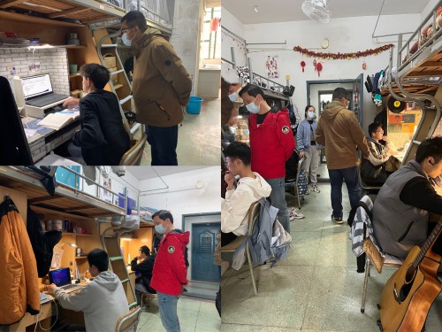 为深入了解学生网课学习情况及近期思想动态,3月18日下午,信息工程学院教务片学生片联动,前往学生社区关心看望学生,强化思想引领,对有课程安排的同学在宿舍上网课情况进行检查督导,对学生如何在疫情下保证学习质量进行交流指导。