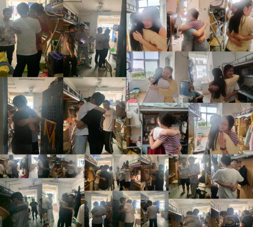 活动伊始,由班主任带领班委前往学生宿舍7栋、12栋开展“爱心拥抱行动”,同学之间的一个无声的拥抱、一句简单的“加油、你最棒、相信自己、你可以...”是自愈自己无穷的力量,交换温暖,互相鼓励,为心灵开一扇窗,让心灵沐浴阳光,让快乐充裕胸膛。