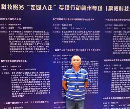 7月8日,由省教育厅、省工信厅、省科技厅、赣州市人民政府主办,高校科技服务“走园入企”专项行动赣州专场活动举行。我校信息工程学院教师陈根华博士携项目《基于机器视觉的实时在线质量检测与分选系统》参加活动。该项目入选专项行动“高校科技成果展示墙”,得到展示和推介。