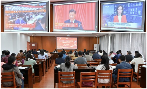 会议学习了中共中央举行新闻发布会对党的二十大报告的介绍解读,深刻认识到党的二十大报告“是夺取新时代中国特色社会主义新胜利的政治宣言和行动纲领,是一篇马克思主义的纲领性文献。”学习了中国共产党第二十届中央委员会第一次全体会议、中国共产党第二十届中央政治局常委同中外记者见面会主要精神。会议通过学习强国平台,观看了视频短片《党的二十大报告金句》、《党的二十大胜利闭幕在各地各界干部群众中引起强烈反响》。