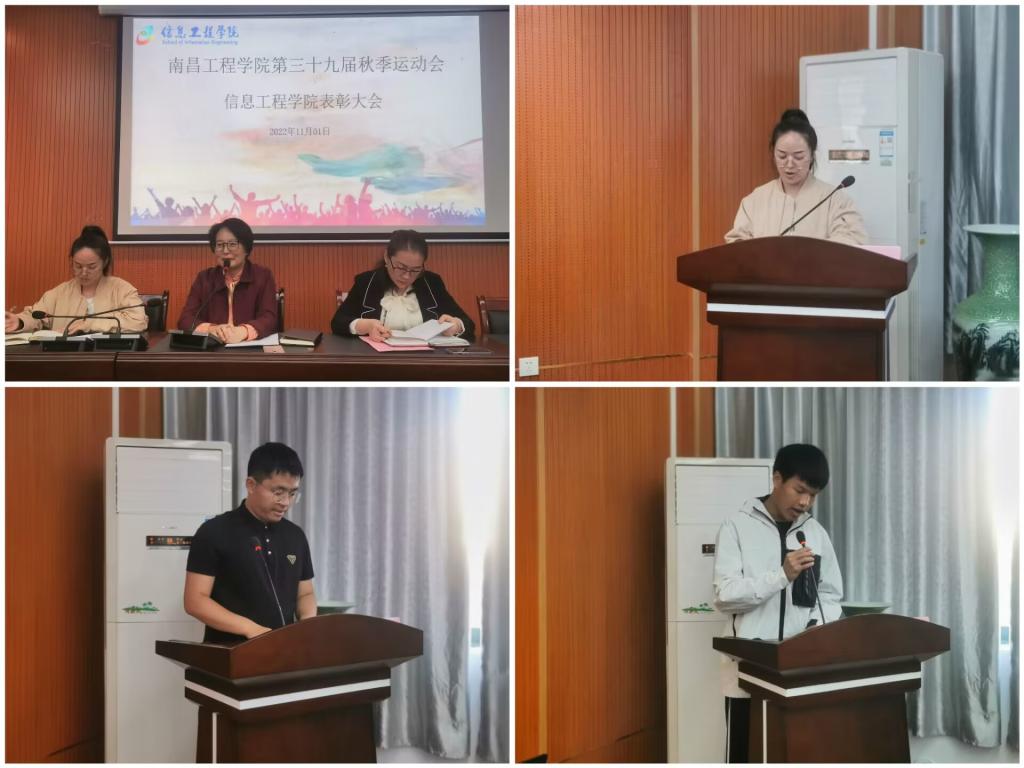 11月1日,信息工程学院在信工楼A208举行第39届田径运动会表彰大会,表彰参加学校第39届田径运动会的运动员和工作人员。学院党委书记虞菊英、团委副书记(学工办副主任)张荣、辅导员谭酉群、运动员和工作人员代表共80余人参加。