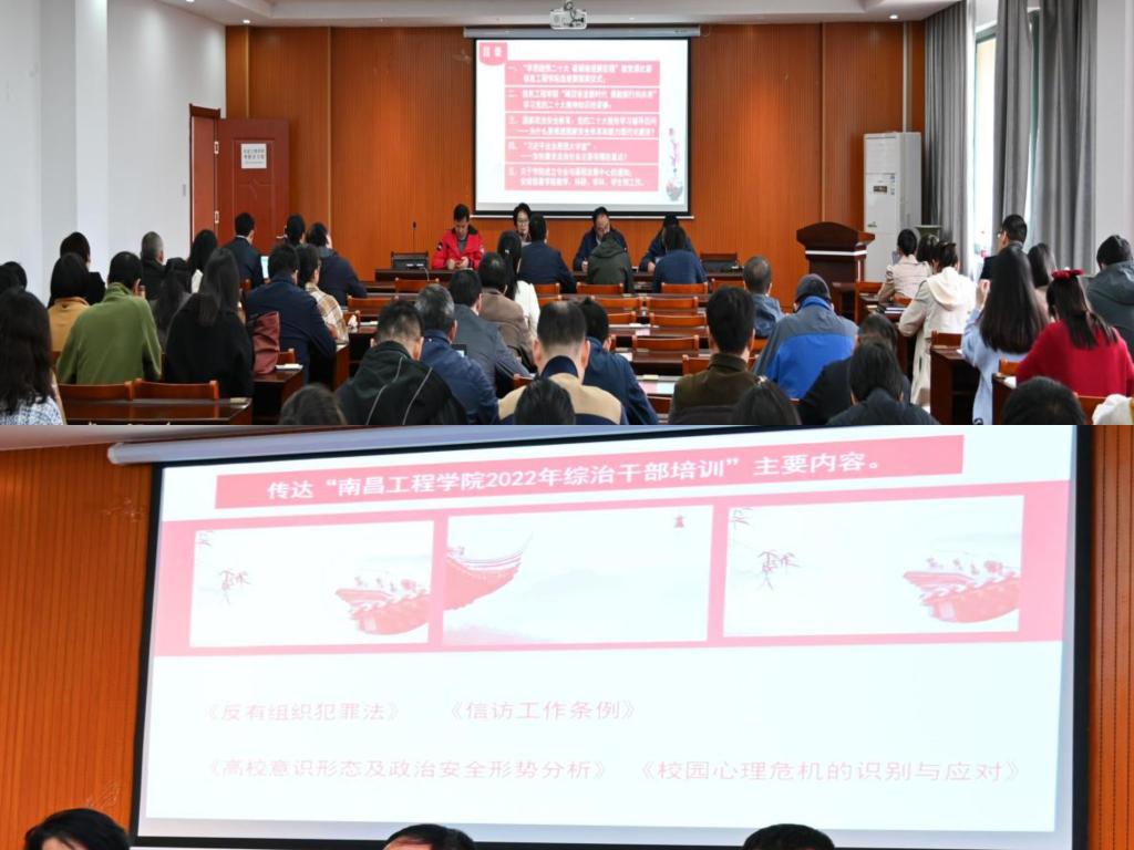 2022年11月22日下午,信息工程学院召开全体教职工会议(政治理论学习),展开“习近平法治思想大学堂”学习,并传达学校2022年综治干部培训主要内容,集中学习《中华人民共和国反有组织犯罪法》,学院党委书记虞菊英强调,全体师生要认真学习《中华人民共和国反有组织犯罪法》的主要内容,深刻领会立法意义、立法宗旨,切实掌握法律精神实质。