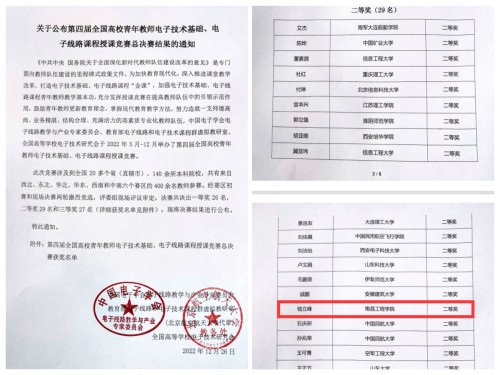 近日,从中国电子学会传来消息,我校信息工程学院教师钱立峰在第四届全国高校青年教师电子技术基础、电子线路课程授课竞赛总决赛中获得二等奖。(文