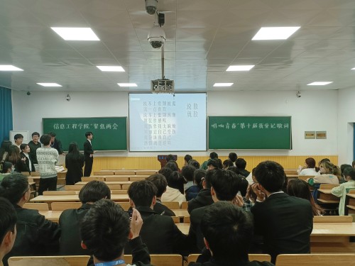 为深入学习宣传贯彻两会精神,厚植爱国之心,砥砺强国之志,培养学生艺术审美情趣,营造充满活力和健康向上的校园文化氛围,充分展现新一代大学生的风采和良好积极向上的精神风貌。4月28日晚,信息工程学院第十届“聚焦两会,唱响青春”我爱记歌词大赛决赛在南C103举行,80余名同学参加比赛。