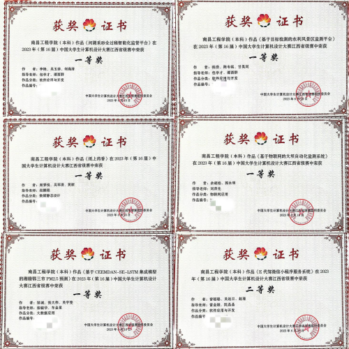 经校级选拔,我校推荐20项优秀作品参加省赛,共有13项作品获奖,其中一等奖5项、二等奖1项、三等奖7项,5项一等奖作品入围全国总决赛,分别是:信息工程学院包学才老师和谭酉群老师指导,21计算机科学与技术01班李艳等同学参与的作品《河湖采砂全过程智能化监管平台》;信息工程学院包学才老师和谭酉群老师指导,21计算机科学与技术01班张浩等同学参与的作品《基于目标检测的水利风景区监测平台》;理学院张毓华老师和车金星老师指导,21应用统计学01班邹诚等同学参与的作品《基于CEEMDAN-SE-LSTM集成模型的湘赣鄂三市PM2.5预测》;人文与艺术学院段鹏程老师指导,20产品设计01班周霁悦等同学参与的作品《纸上药香》;机械工程学院刘萍先老师指导,21机器人工程02班余胡松等同学参与的作品《基于物联网的大坝自动化检测系统》。
