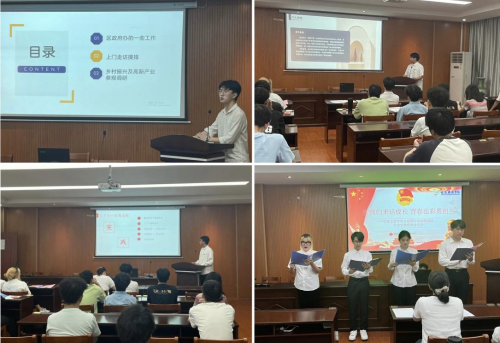 会上,学院2023年重点团队大学生“水域使者”社会实践团负责人汪力从团队组建、实践内容、社会影响、成长感悟等方面,分享暑期社会实践的过程和总结。大学生实习“扬帆计划”代表陈泓宇生动讲述了暑期在江西建工集团的实习经历,畅谈理论学习、业务工作等方面的感悟,分享自己的收获。“返家乡”社会实践代表饶东波通过大量的图片展示所走访乡镇在乡村振兴发展中取得的成果,认为科技是实现乡村振兴的重要因素。最后,诗歌朗诵《闪耀吧!青春的火光》,号召同学们积极参与社会实践活动,谱写自己的青春华章。