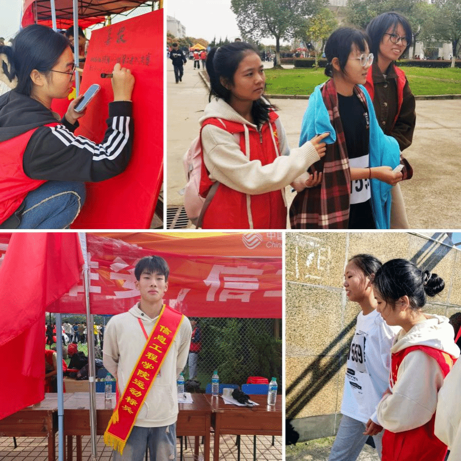 开幕式上,方阵队员以昂扬的姿态、迈着整齐的步伐经过主席台,展示了信工学子特有的精气神。比赛中,运动健儿们展现出了顽强拼搏,永不言败的精神风貌,在赛场上始终保持着良好的体育道德风尚。无论是速度与激情交织的田径比赛,还是智慧与勇气结合的团队项目,运动员们总是全力以赴,勇往直前。观众席上的加油声,欢呼声,喝彩声不绝于耳,激励着运动员们不断超越自我。还有一批志愿者在背后为比赛做好全方位的服务,为运动健儿们做好后勤保障。