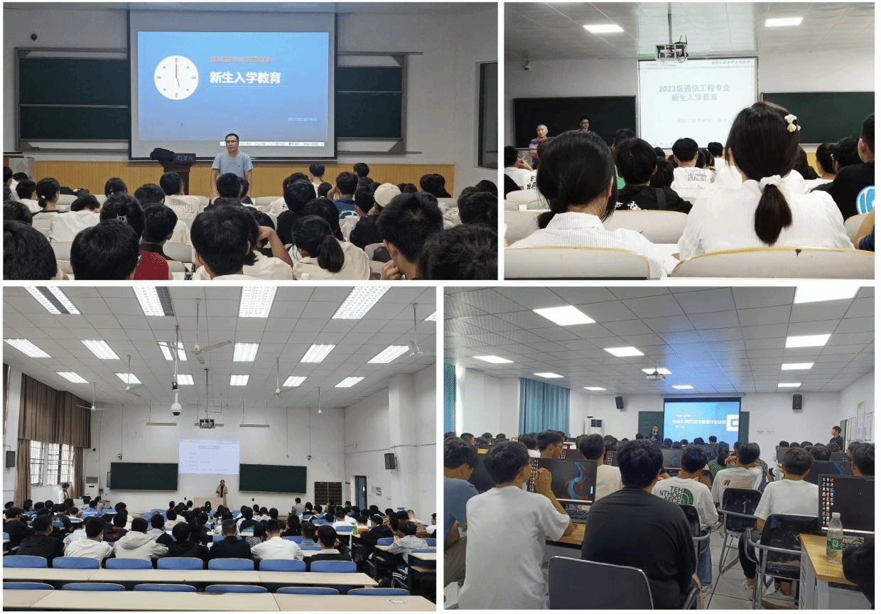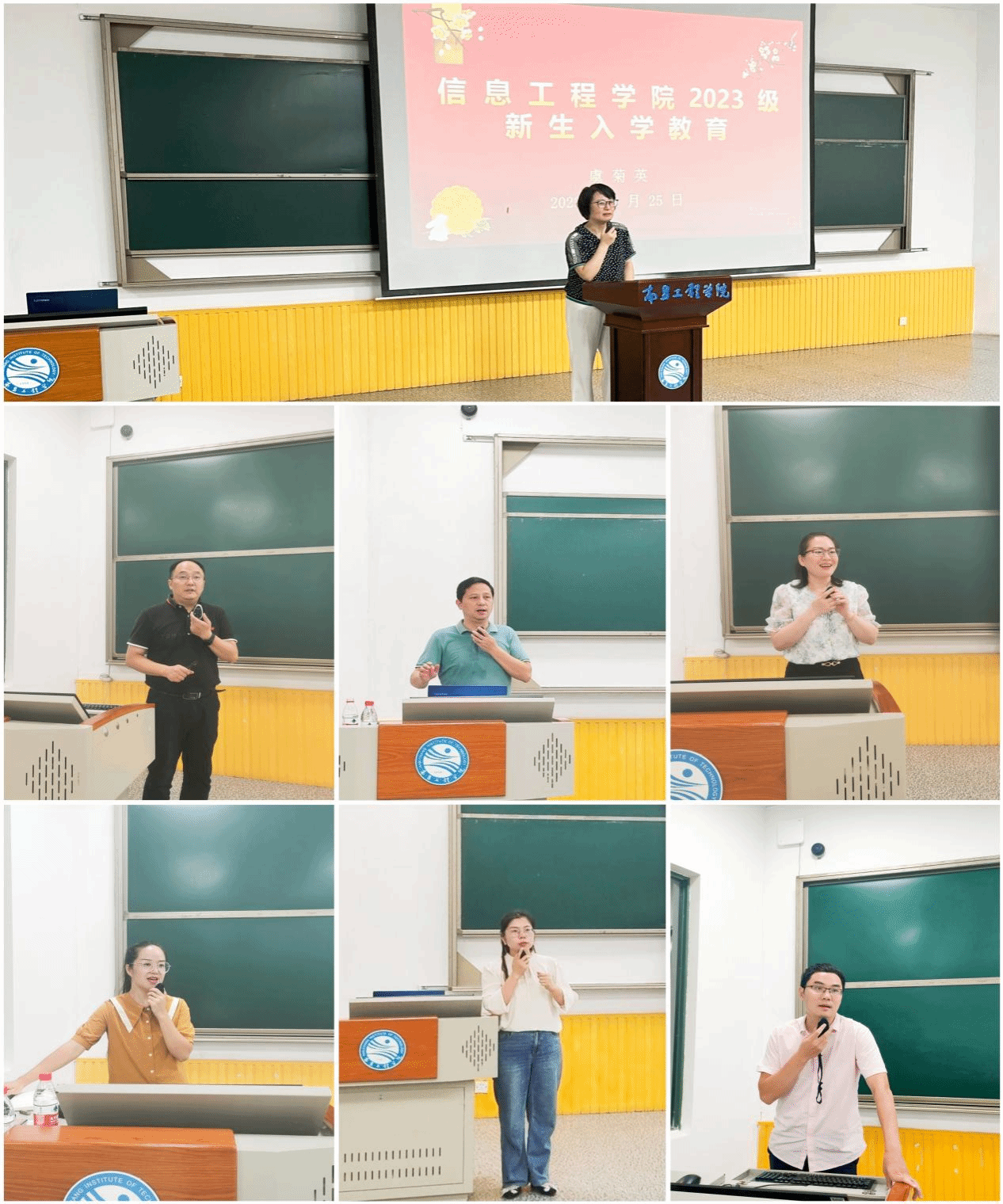 为引导新生坚定理想信念、树立远大理想,尽快了解新生活、适应新环境、转变新角色,信息工程学院在2023年9月-10月期间,通过集中授课、参观校史馆、讲座等多种形式开展2023级新生入学教育,由副校长陆伟锋、学院党政负责人、教研室主任、专业负责人、校友、辅导员和班主任担任主讲,2023级全体新生参与。