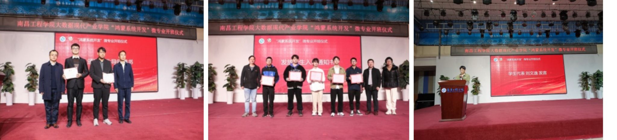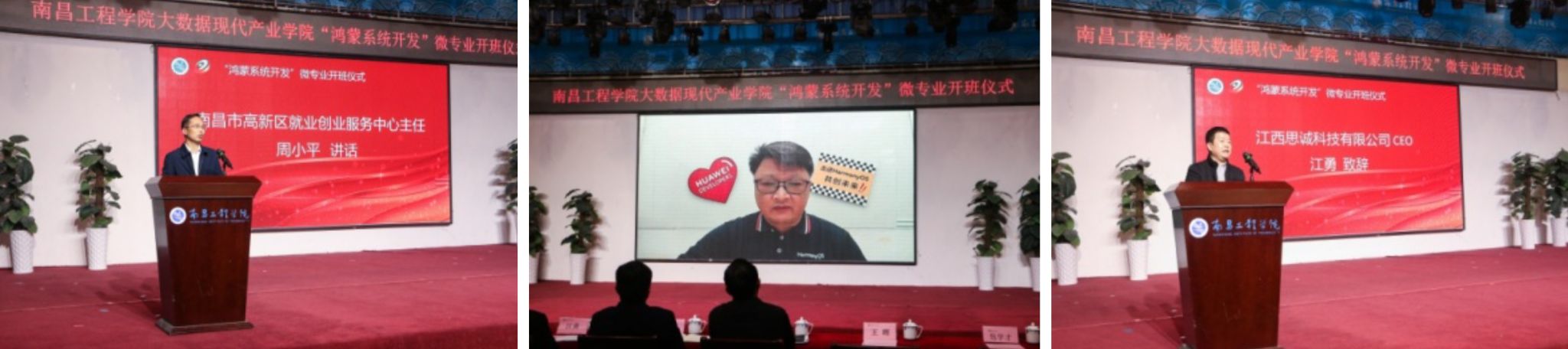 据悉,“鸿蒙系统开发”微专业是我校大数据现代产业学院的首个微专业,也是南昌工程学院和南昌市光电产教联合体的第一个微专业。此次“鸿蒙系统开发”微专业开班仪式的顺利召开,为学生提供了一个宝贵的学习机遇,助力鸿蒙生态的进一步发展,为培养信息技术应用创新产业领域高端技术技能人才、推动物联网和基础软件核心技术进步、服务地方经济社会发展和国家重大战略作出贡献。(文/冯祥胜 沈楠 图/江思诚)