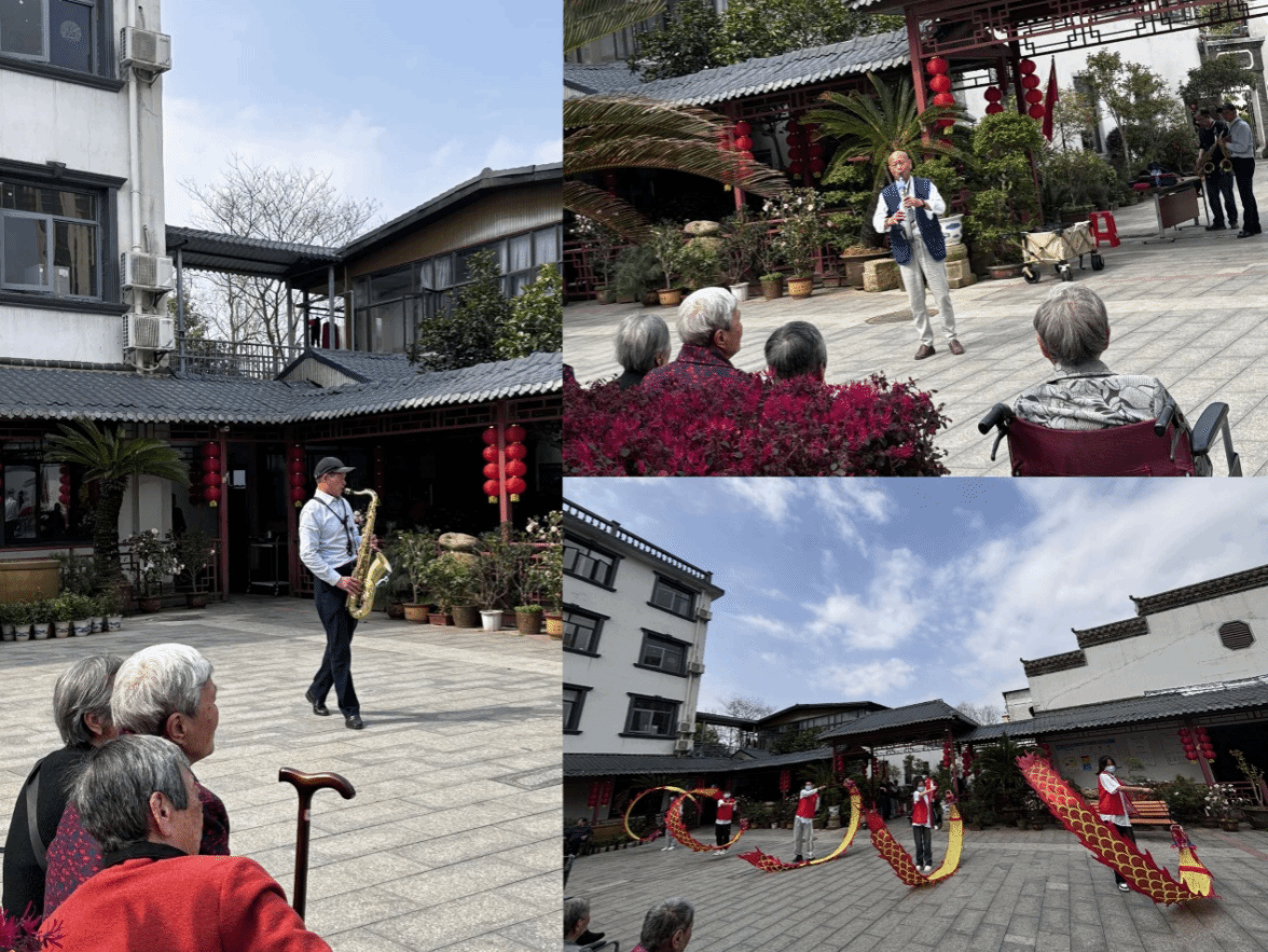在青协会长的组织下,志愿者们分成小组与老人们亲切交流,聊天拉家常并关切地了解老人的生活状况,认真倾听老人们的故事和心声,志愿者们的关怀让老人们感受到了年轻人的热情和温暖。在交流过程中,志愿者们还主动为老人们整理内务、打扫卫生,使他们的居住环境更加整洁舒适,他们的细心和耐心得到了老人们的一致好评。活动期间,信息工程学院涂振宇教授带领教师队伍来到养老院,为老人们带来了精彩的乐器表演,悠扬的旋律和动听的歌声回荡在养老院的每个角落,老人们沉浸在美妙的音乐中,时不时地随着节奏拍手,脸上洋溢着幸福的笑容。