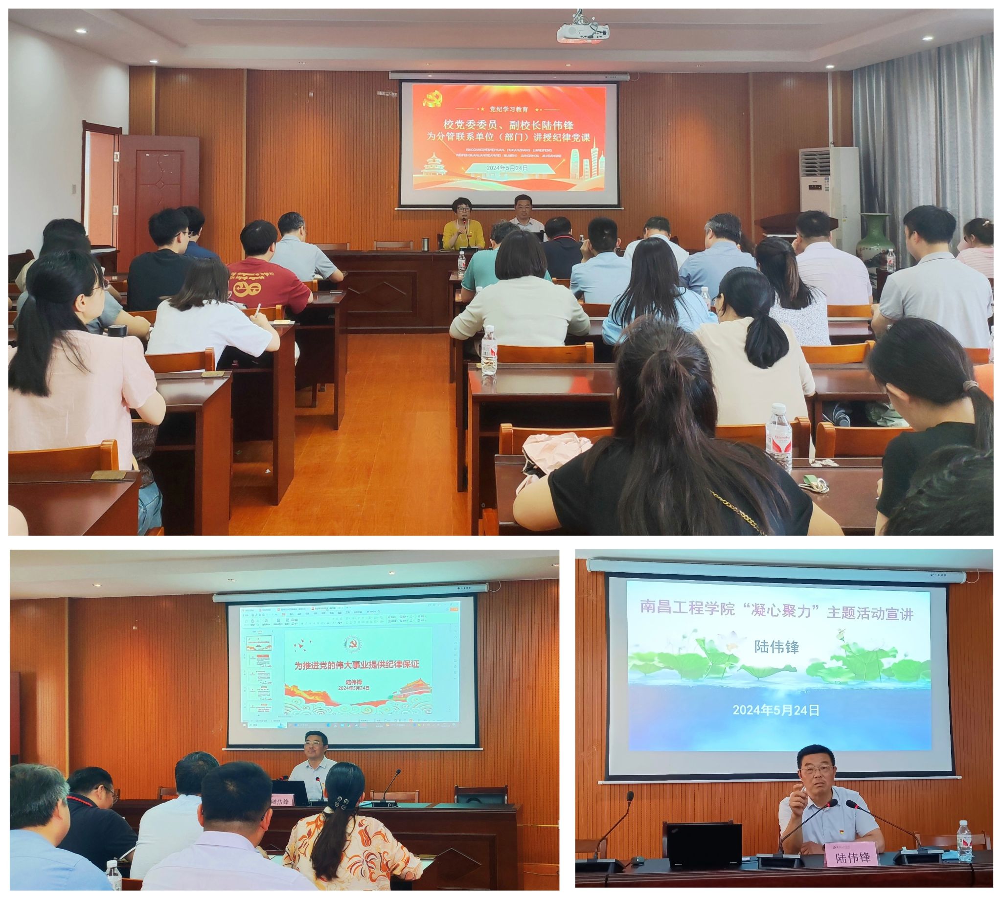 为深入开展党纪学习教育,5月24日下午,校党委委员、副校长陆伟锋在信工楼A208会议室为分管联系单位和部门讲授了纪律教育专题党课。人事处、教务处、基建处、离退休党委、教师发展与服务中心、继续教育学院、瑶湖学院和信息工程学院等单位和部门近百名师生党员参加。非党员领导干部列席听课。