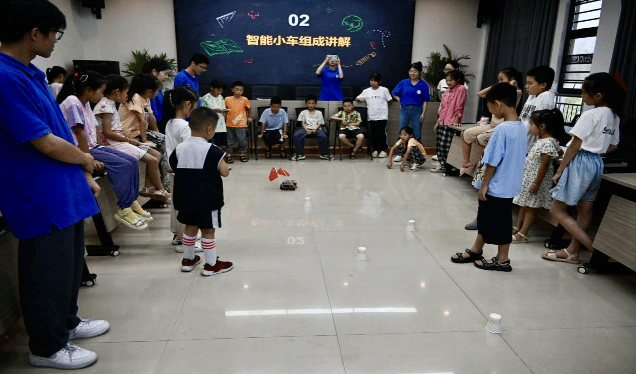 实践团前期了解到,新时代文明实践站有“童心港湾”项目,常态化开展关爱留守儿童各类活动,格外热闹。为给小朋友们带来多彩课堂,让孩子们在实践探究中走进科技世界,感受科学奥秘,播种小小科技梦,实践团开展科普课程、科普实验和科技活动,通过讲解科学的发展、编程的来源和魅力,运用专业知识,现场编写代码,展示编程的奇妙。结合动漫短片,以代码生成的小游戏进行课堂展示和试玩。另外,还进行了智能车组成讲解,以人工智能技术驱动智能车,通过亲身体验遥控智能车,为小朋友们带来科学知识的科普,激发孩子们对科学的兴趣,培养他们的科学实践能力,做好科学教育启蒙。针对孩子们提出各种“奇妙”问题,实践团成员用最生动、最耐心的话语一一解答,坚持“科学家要有一颗童心”理念,借科普托起孩子们的科学梦。