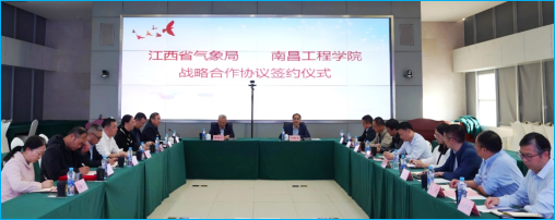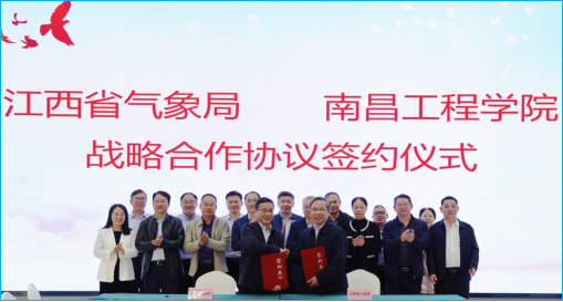 11月6日,江西省气象局和南昌工程学院战略合作协议签约仪式在江西省防灾减灾科技园顺利举行。江西省气象局党组书记、局长傅敏宁,校党委副书记、校长刘祖文出席签字仪式并讲话。省气象局二级巡视员何财福,南昌工程学院校党委委员、副校长贺丹君代表合作双方在协议上签字。省气象局办公室、观测处、预报处、人事处、高质量办,南昌工程学院校党委(校长)办、科研处、水利工程学院、水土保持学院、机械工程学院、信息工程学院相关负责人参加。