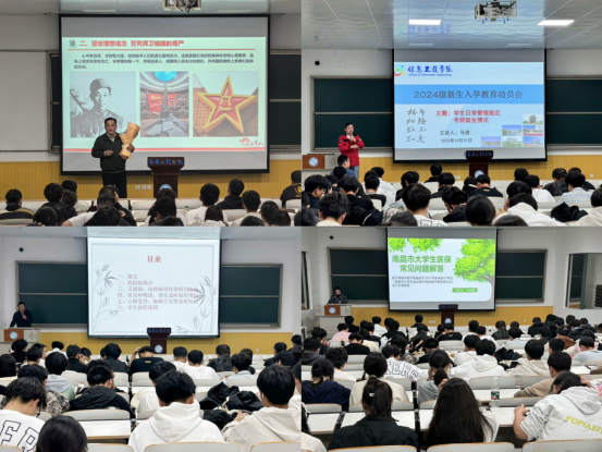 学院辅导员张荣、李佳娟、闫方超、田晨分别进行了心理健康教育、入党启蒙教育、创新创业教育、校园安全教育、防诈骗教育、防溺水教育、国家安全、网络安全教育等主题教育。各班级召开主题班会,班主任组织新生学习《南昌工程学院学生日常管理规定》,引导他们明确各项规章制度的要求并自觉遵守。