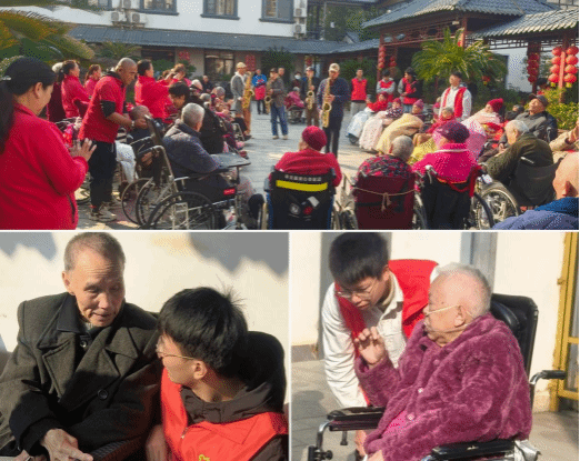 师生志愿者与养老院负责人进行工作交流后,开展敬老爱老志愿服务活动,他们分工明确,各司其职。有的志愿者们来到老人们的房间,帮助他们整理床铺和衣物、打扫房间卫生,让老人的居住环境整洁舒适;有的志愿者们与老人们亲切交谈,倾听他们的故事和心声,用心聆听并感受着他们的人生智慧;学院涂振宇教授带领志愿者为老人们献上精彩的萨克斯合奏,老人们听得津津有味,欢声笑语回荡在养老院的每个角落。