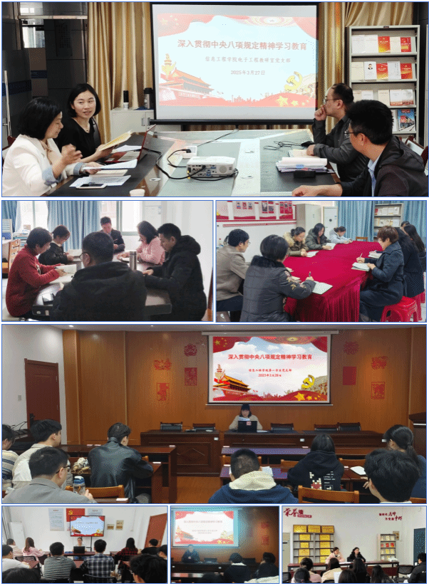 根据学校党委统一部署,3月27-31日,信息工程学院积极行动起来,分别组织召开学院党委扩大会、党支部委员会和党支部大会,启动部署深入贯彻中央八项规定精神学习教育。
