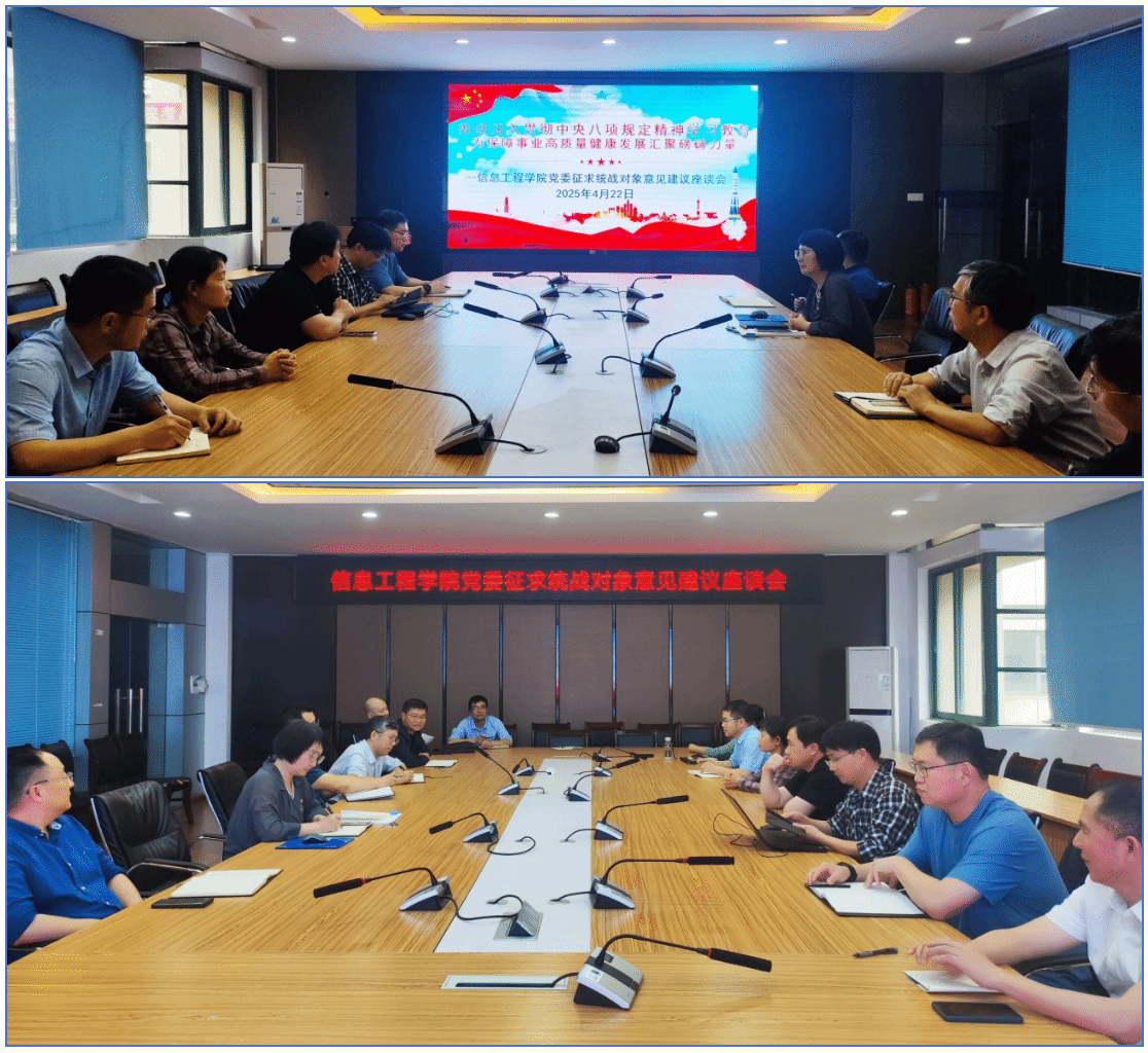 为持续推动深入贯彻中央八项规定精神学习教育,落实“开门教育”要求,4月22日,信息工程学院党委召开座谈会,征求统一战线教师代表意见建议。学院民主党派及党外知识分子教师代表参会,学院党政班子全体成员到会并交流互动。