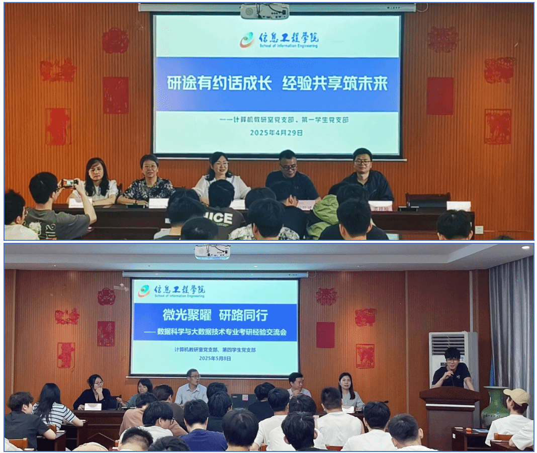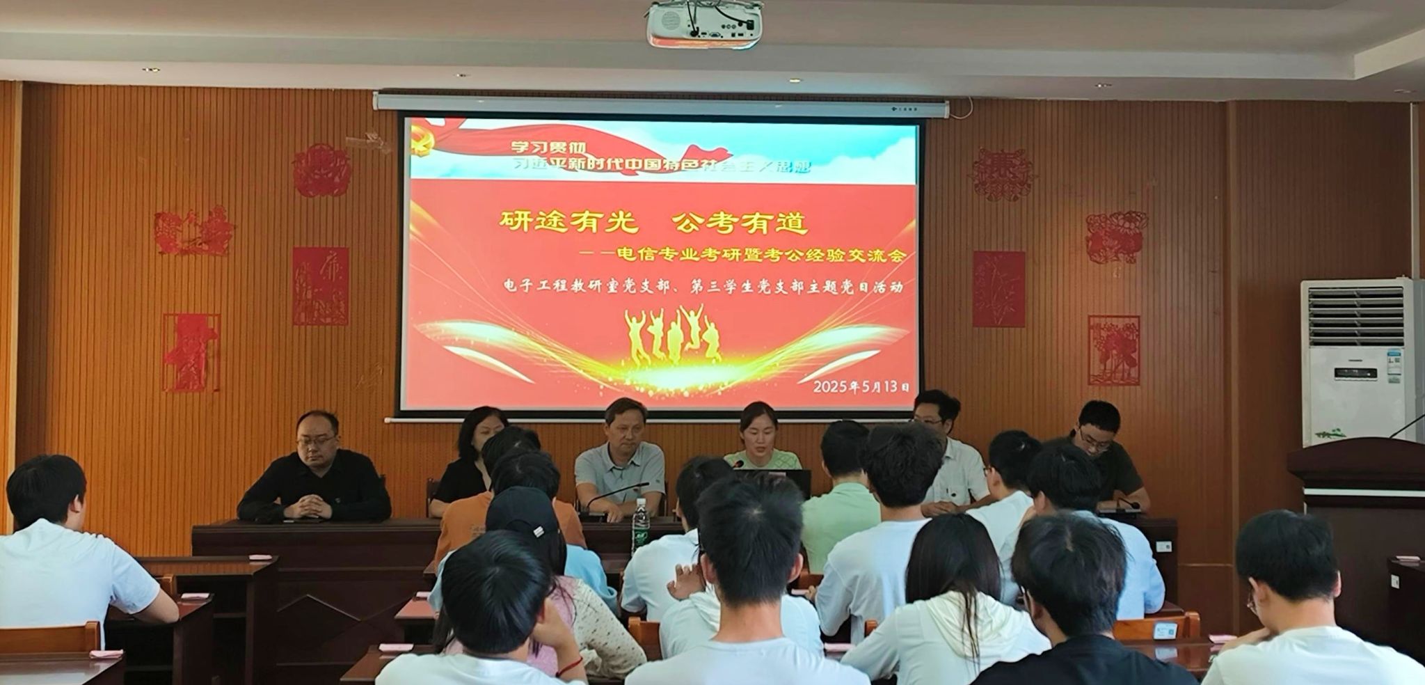 为深入践行党的群众路线,密切教师党员与青年大学生的联系,进一步促进高校基层党建与人才培养深度融合,持续推进学风建设月活动,以优良党风和作风促学风,营造积极向上的学习氛围,近日,信息工程学院各教工党支部联合对应共建的学生党支部,围绕“党建引领 研途筑梦”主题,分别举办了四场考研经验交流会,学院各党支部书记、教研室主任、专业负责人、专任教师党员、2025届考研已录取毕业生代表及22级300余名同学参加。