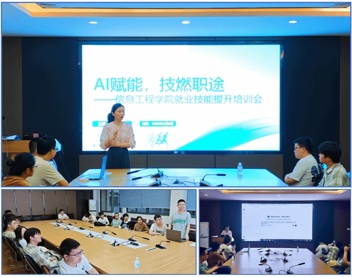 5月上旬以来,为帮助同学们把握人工智能时代职业发展新机遇,掌握前沿就业工具与方法,提升就业竞争力,信息工程学院开展了人工智能辅助就业活动。5月6日,在信工楼B204举办“AI赋能,技燃职途”就业技能提升培训会,学院就业辅导员王文莉担任主讲人,各班级就业工作联络员十余名同学参加。