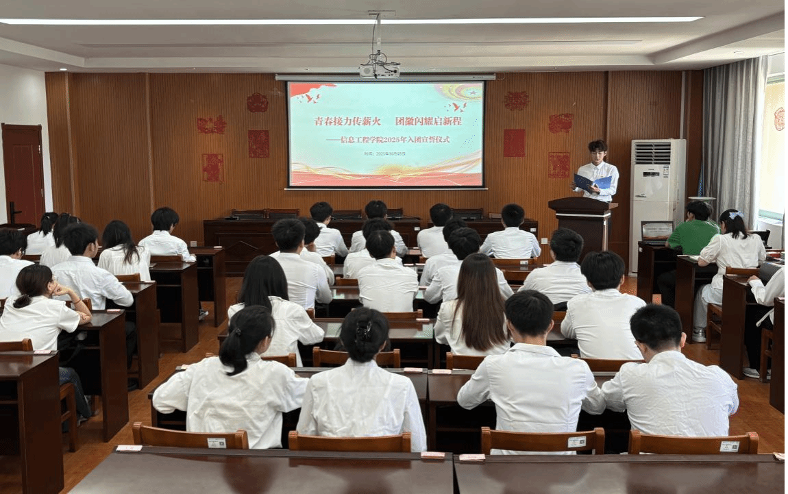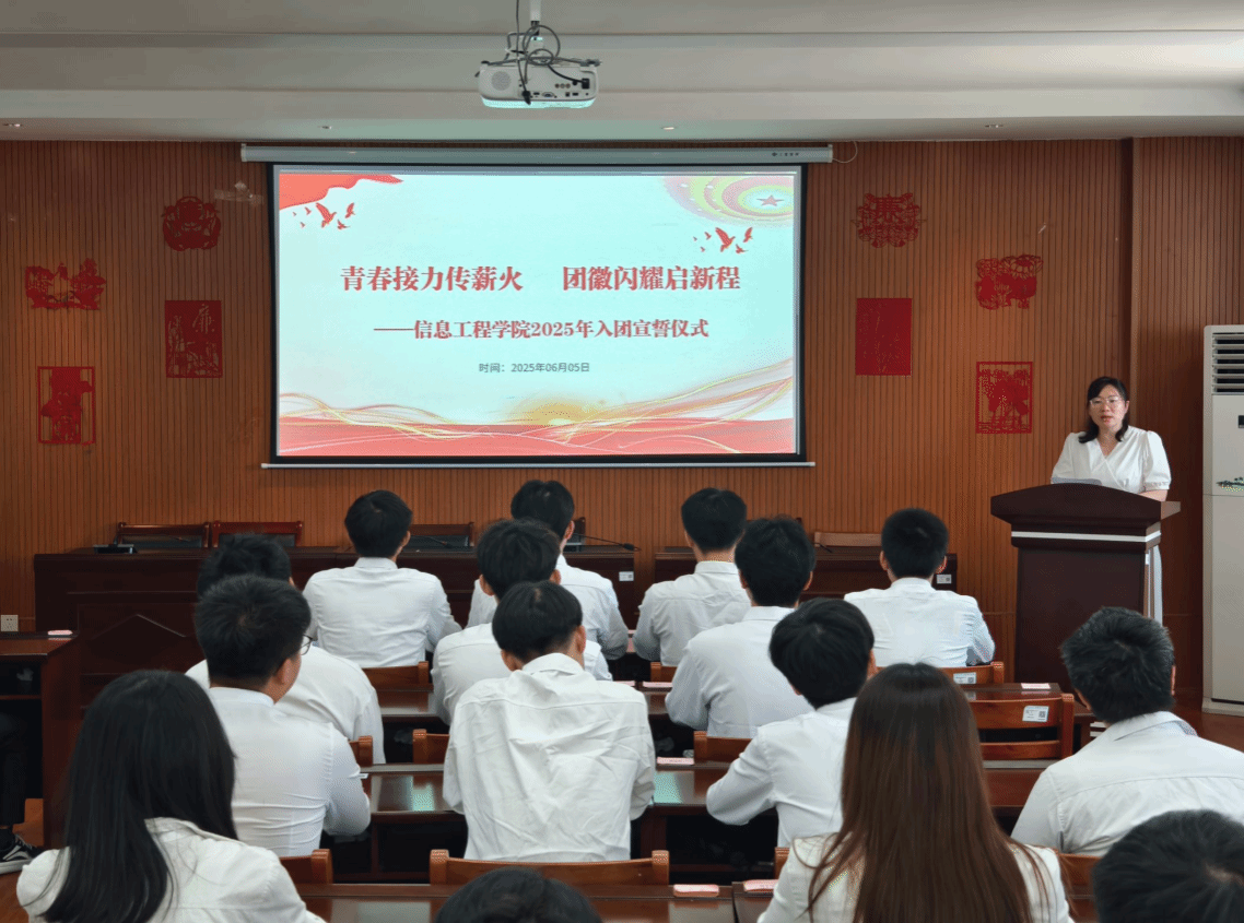 2025年6月5日,信息工程学院团委在信工楼A208举办“青春接力传薪火 团徽闪耀启新程”2025年入团宣誓仪式,学院团委负责人、2025年新团员及学院第十六期青马工程培训班成员参加。