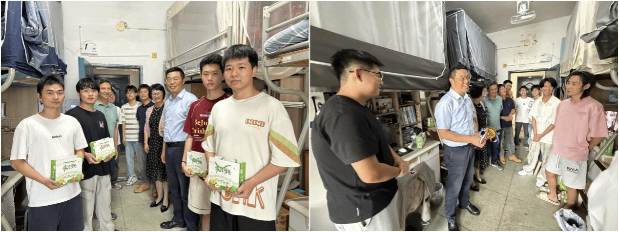在学生宿舍7栋,陆伟锋亲切看望学生,为同学们送上端午粽子并致以节日祝福,传递学校的关怀。他细致了解同学们的生活起居环境与学习近况,叮嘱大家注意安全,养成健康生活习惯。