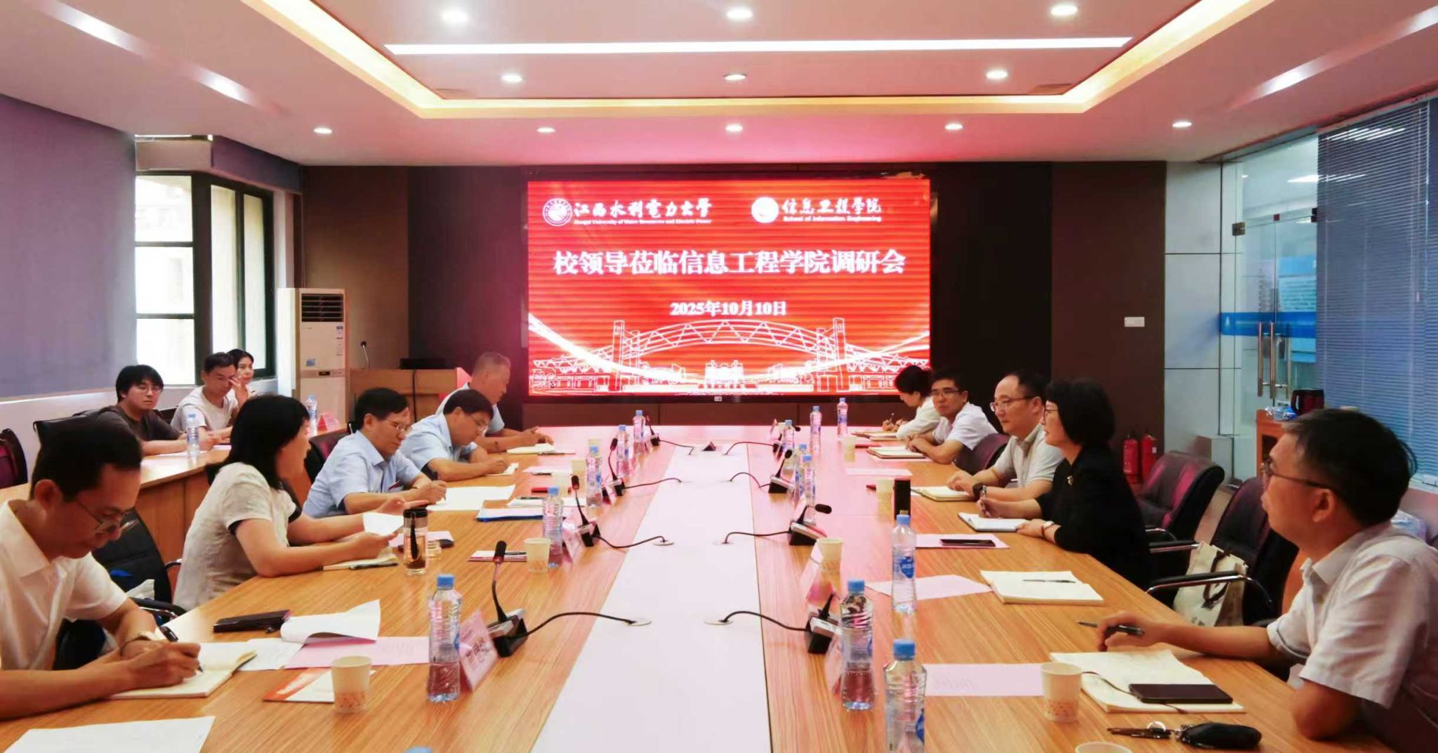 10月10日下午,校党委书记汪胜前、副校长周仲魁、副校长王媛率教务处、科学技术处相关负责人一行,深入信息工程学院调研,并在信工楼B204会议室开展调研座谈。学院班子成员、科级干部及教师代表参加会议。